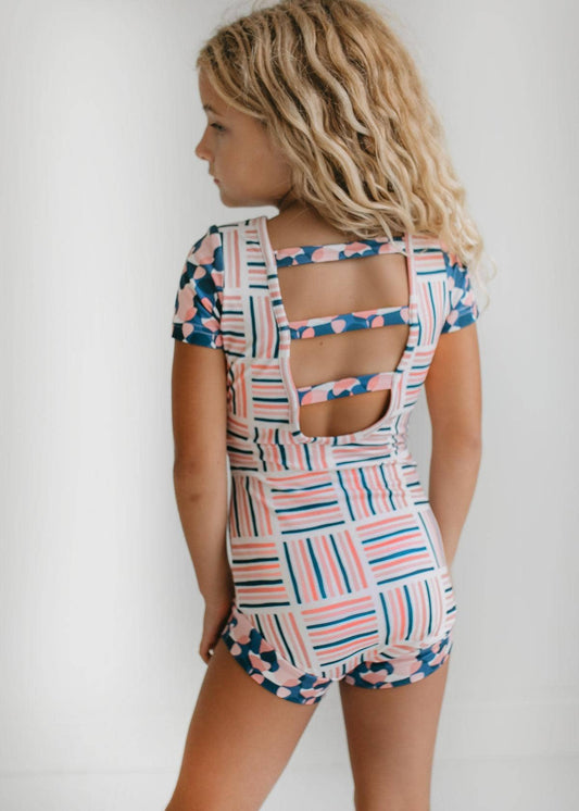 Kids Pink & Blue Block Print Dance Gymnastics Leotard