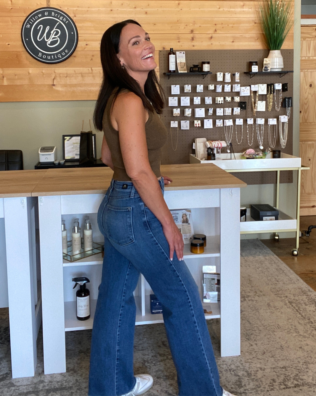 Make a statement in denim with the Paola A-Line Scissor Hem Wide Leg Jean by Letter to Juliet. This trend-forward jean features a flattering A-line silhouette with a high-rise waist and wide leg for a chic, elongated look. The scissor-cut raw hem adds just the right amount of edge, making these jeans perfect for dressing up or down.