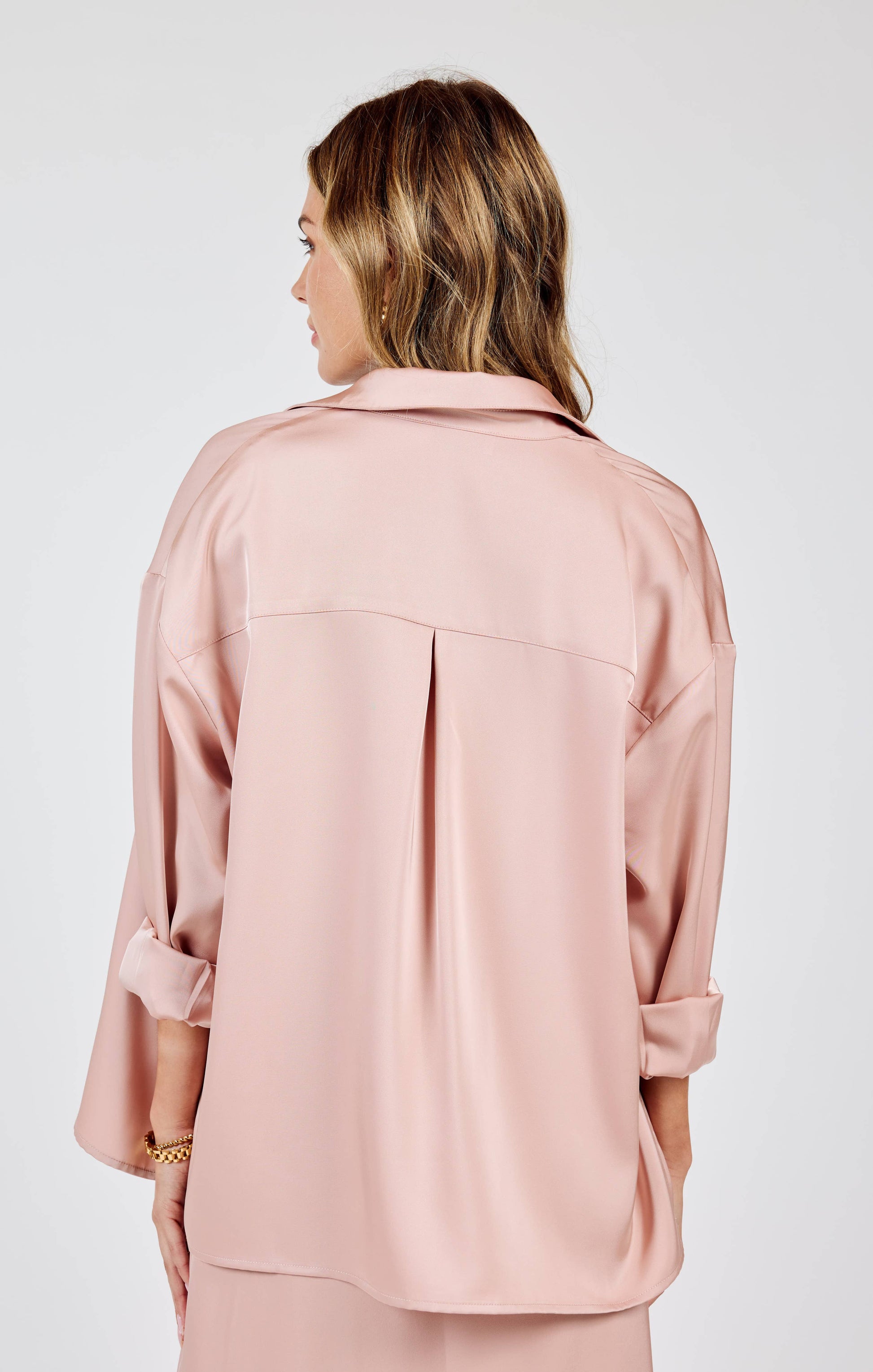 Brighten your wardrobe—and your day—with the Mood Boost Button Up Shirt in Rose. This lightweight woven top features a relaxed, slightly oversized fit that drapes beautifully for that effortless, laid-back look. The soft rose hue adds the perfect pop of color while still feeling neutral and easy to style. Finished with a classic collar, front button closure, and cuffed sleeves, it’s the perfect blend of polished and playful.