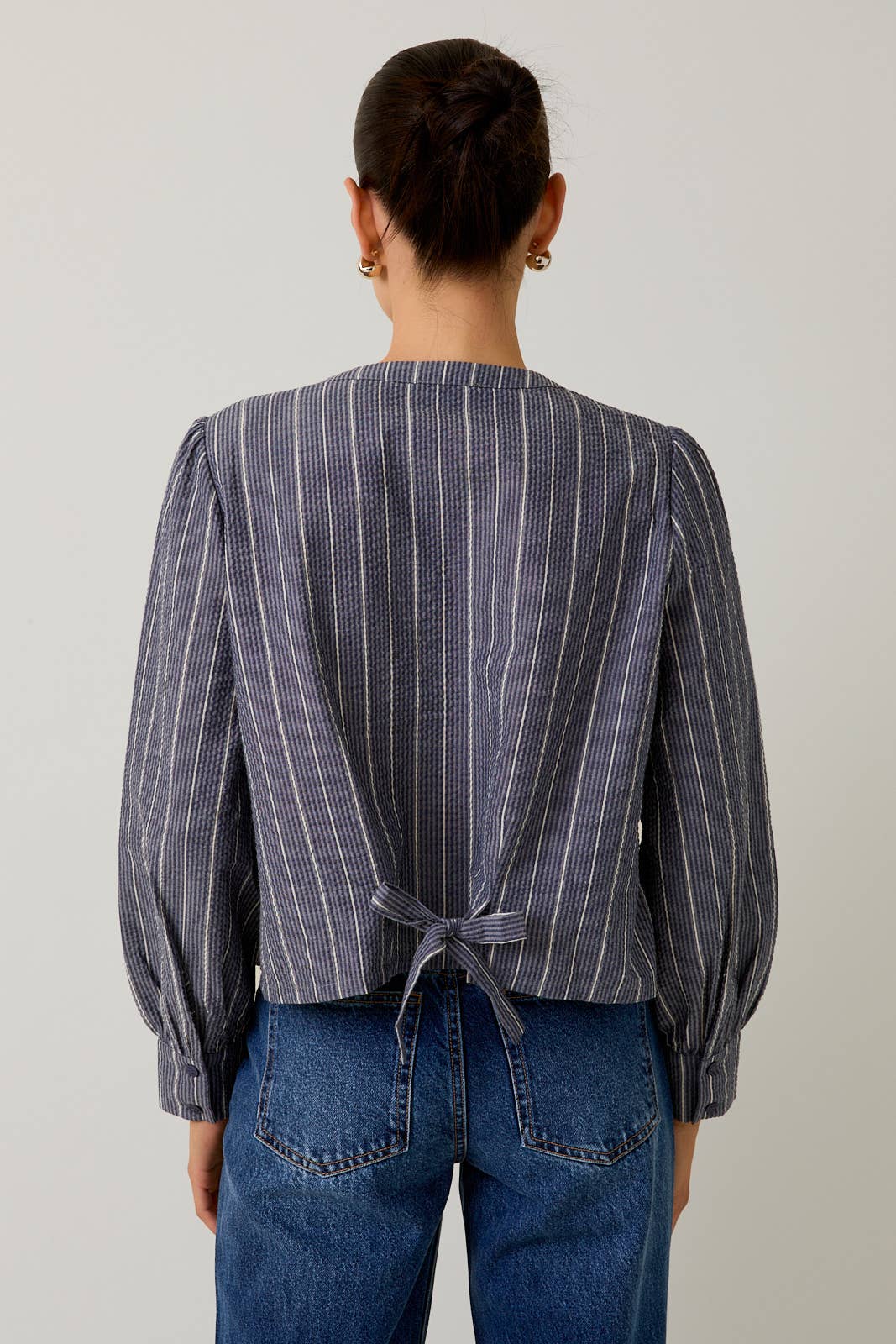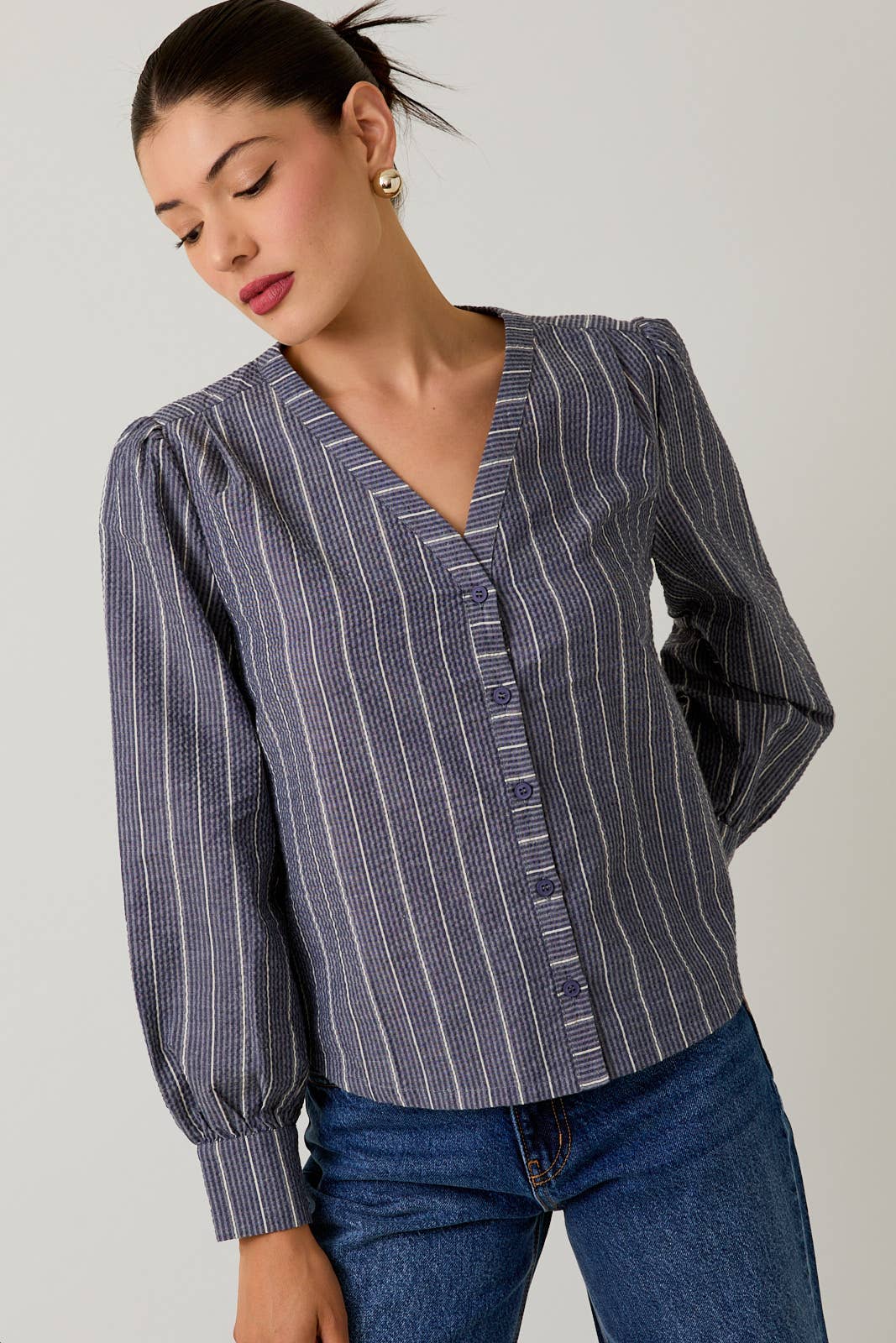 Add a touch of classic style to your wardrobe with the Vera Top. Featuring a timeless navy and cream stripe pattern, this top offers a relaxed yet polished look that’s perfect for everyday wear. Its soft, comfortable fabric drapes beautifully, making it ideal for pairing with your favorite jeans, skirts, or layered under jackets and cardigans. Effortless, versatile, and chic — the Vera Top is a must-have staple for any season.